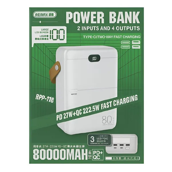 پاوربانک ریمکس مدل RPP-566 ظرفیت ۸۰۰۰۰ میلی آمپر